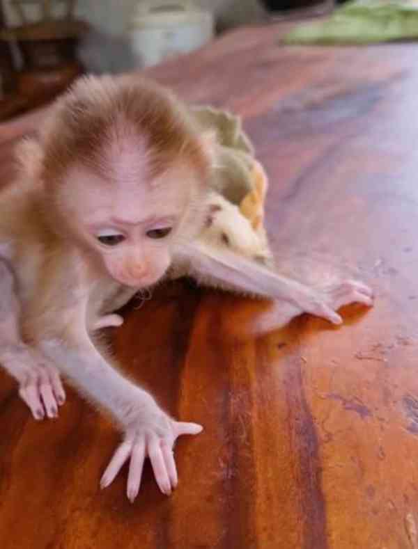 Dobře vycvičené, ochočené a krásné mládě kapucínské opice připravené do nového domova. Má krevní testy a dodává se se všemi zdravotními doklady, zdravotní zárukou, hračkami a průkazem péče. Je přátelská, milá a snadno se stýká s ostatními domácími mazlíčky. Má ráda výlety a je velmi inteligentní a ohleduplná. Snadno se přizpůsobí novému prostředí a klimatu, kontaktu.