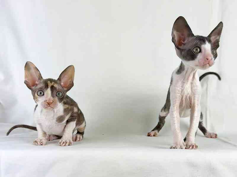 Seznamte se s tímto úžasným cornish rexem, vzácným krásákem s hedvábnou, kudrnatou srstí a velkýma, výraznýma očima. Cornish rex, známý jako „chrt kočičího světa“, je zbožňován pro svou štíhlou postavu, bezmeznou energii a láskyplnou povahu. Tento malý tvor je plný osobnosti – hravý, zvědavý a vždy připravený se pomazlit.
