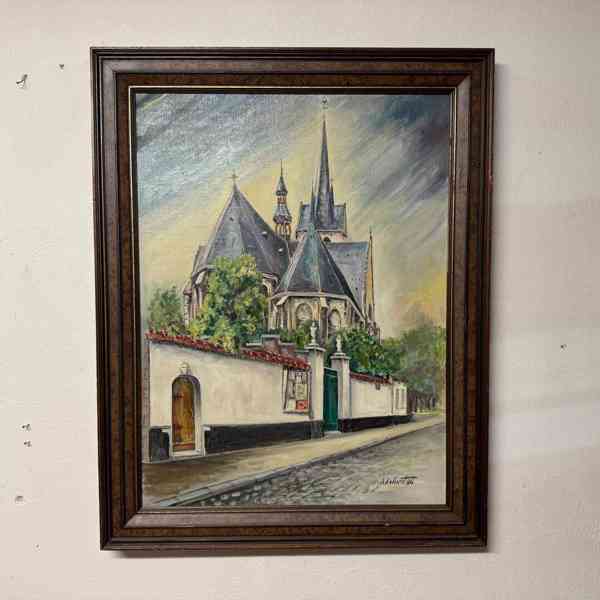 Holandský obraz ve dřevěném rámu ● akryl na plátně ● vyroben ve čtvrté čtvrtině dvacátého století ● původ Holandsko