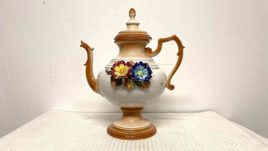 Porcelánová konev ● pouze dekorace ● původ Belgie ● období neurčeno ● poničené zdobení, viz. foto