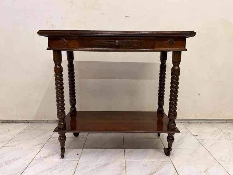 Starožitný konzolový stolek ● dubové dřevo ● kvalitně zpracované sloupy ● původ Holandsko ● vyroben ve třetí čtvrtině dvacátého století