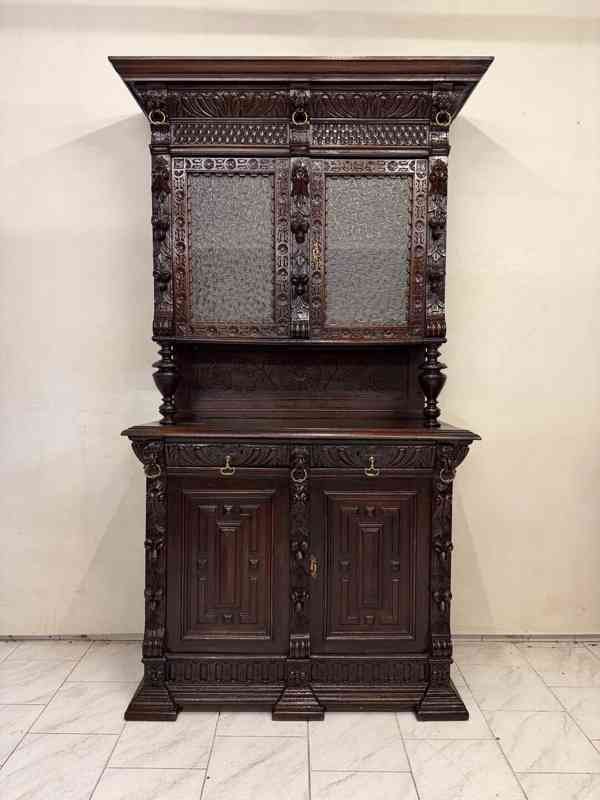 Starožitný příborník Mechelen ● spousta úložného prostoru ● mosazné kování ● dubové dřevo ● styl Mechelen ● období historimus ● původ Belgie ● rok +- 1900