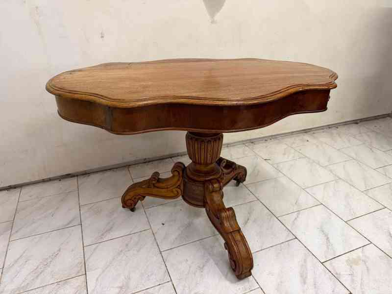 Starožitný elegantní stůl ● biedermeier / neorenesanční styl ● bohatě vyřezávané nohy ● zachovalý stav ● období historimus ● původ Belgie ● +-1900