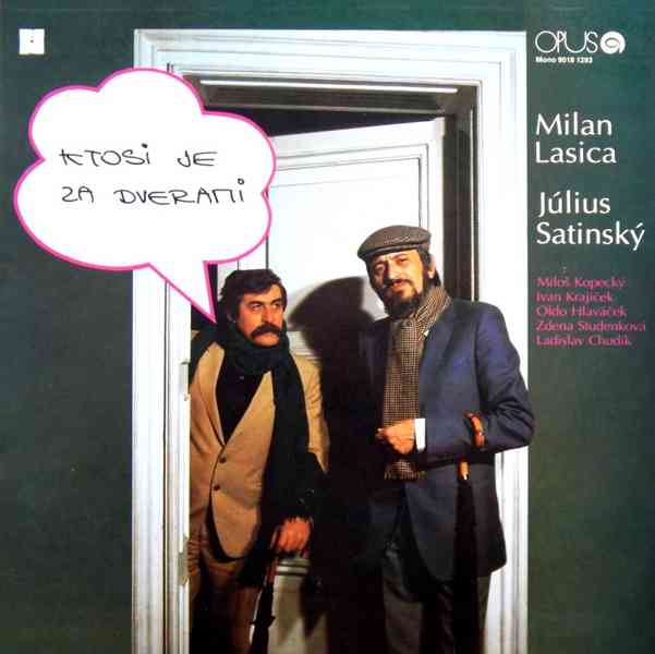 Prodám LP Lasica-Satinský: Ktosi je za dverami. Za dveřmi jsou: Miloš Kopecký, Ivan Krajíček, Oldo Hlaváček, Zdena Studenková, Ladislav Chudík.
