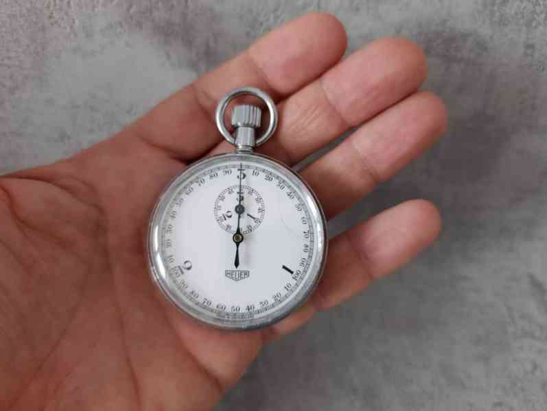 Velmi staré vojenské švýcarské stopky mikrograph Heuer - na zadní straně: Majetek vojenské správy