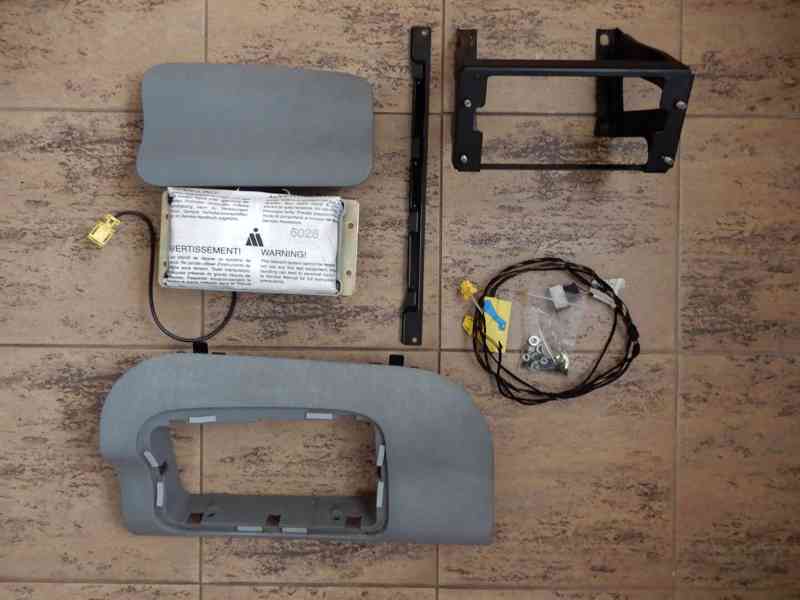 Prodám originál sadu airbagu spolujezdce na Škoda Felicie facelift, tak jak je na foto - kabeláž, šrouby, držák airbagu, výplň palubní desky a airbag s krytkou, použitá. Cena za sadu: 850kč.